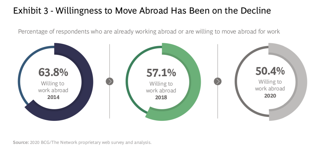 Every couple of years, The Boston Consulting Group (BCG) and The Network set out to complete one of the largest surveys that likely exist. In total, 209,000 people in 190 countries were asked to offer their two cents on whether and under what circumstances they would move to a foreign country for work. The study was previously conducted in 2014 and 2018.