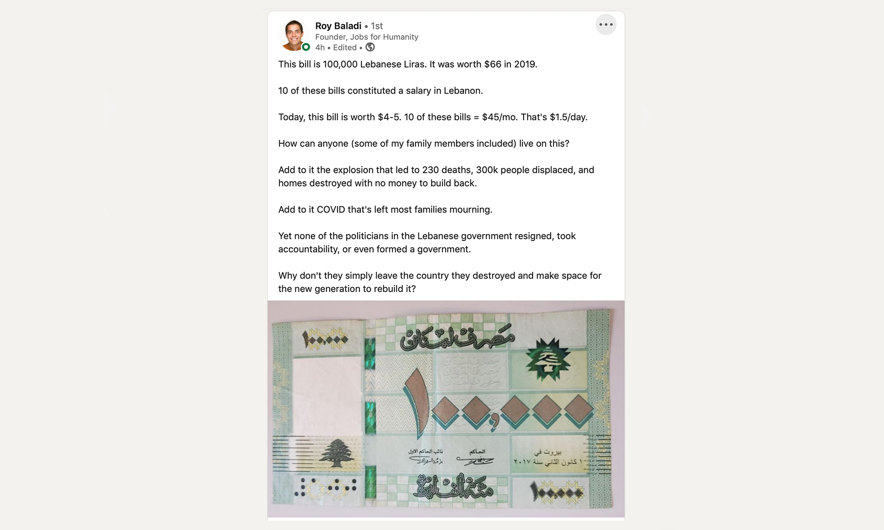 After an economic collapse, a pandemic and a devastating explosion — Lebanon needs any help it could get. Amid an economic turmoil, Jobs for Lebanon shines as a beacon of hope for a country in deep economic trouble. “In 2021, we’re doubling our focus to make Lebanon an outsourcing hub for the world”, says Roy Baladi, its co-founder.