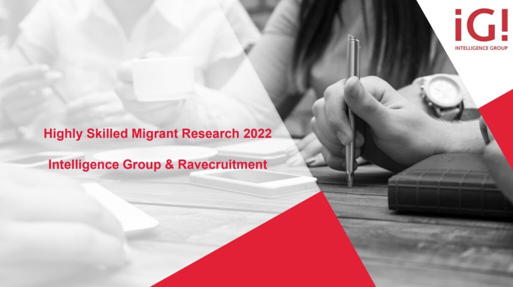 The full ‘Highly Skilled Migrant Research 2022’ report by Intelligence Group and Ravecruitment is available through Nadina Bricic (Intelligence Group), Rob van Elburg or Delijah Waccary (Ravecruitment).