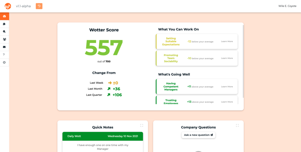 Wotter is a platform that allows companies to track their employee engagement initiatives based on a variety of components. The UK-based company offers a variety of different features within its service. That includes automatic questions that test baseline employee engagement, a prebuilt library of questions and instant, and anonymous feedback from employees.
