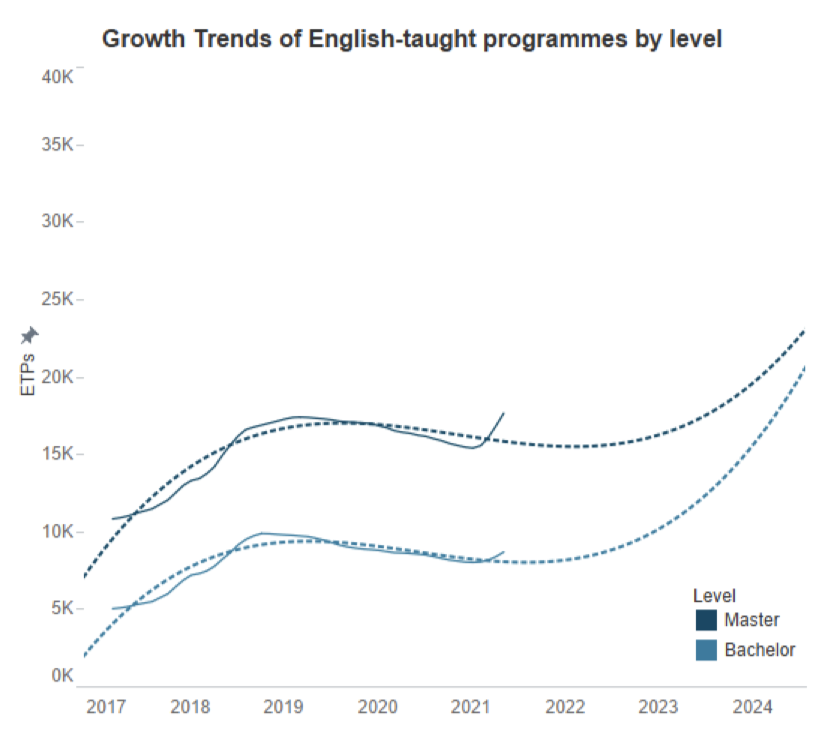 In the last five years, English-taught programmes outside of the Big Four has grown by 77%.